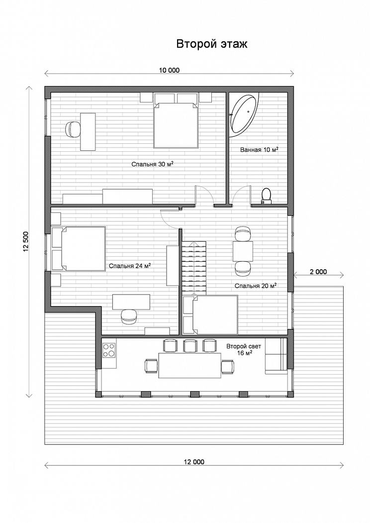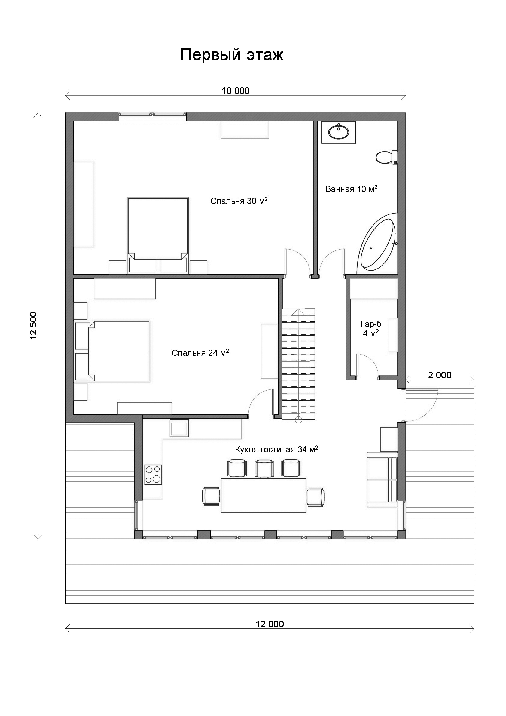 Самый большой проект в серии домов Оптима. Визитная карточка этого дома – стеклянный витраж Фахверк, сквозь который будут освещаться гостиная в первом этаже, которая имеет второй свет. Наличие 3-х спален на втором этаже позволит разместить большое количество гостей. Еще одним преимуществом этого дома, выход с гостиной на террасу, на которой можно приготовить барбекю или принять солнечные ванны.